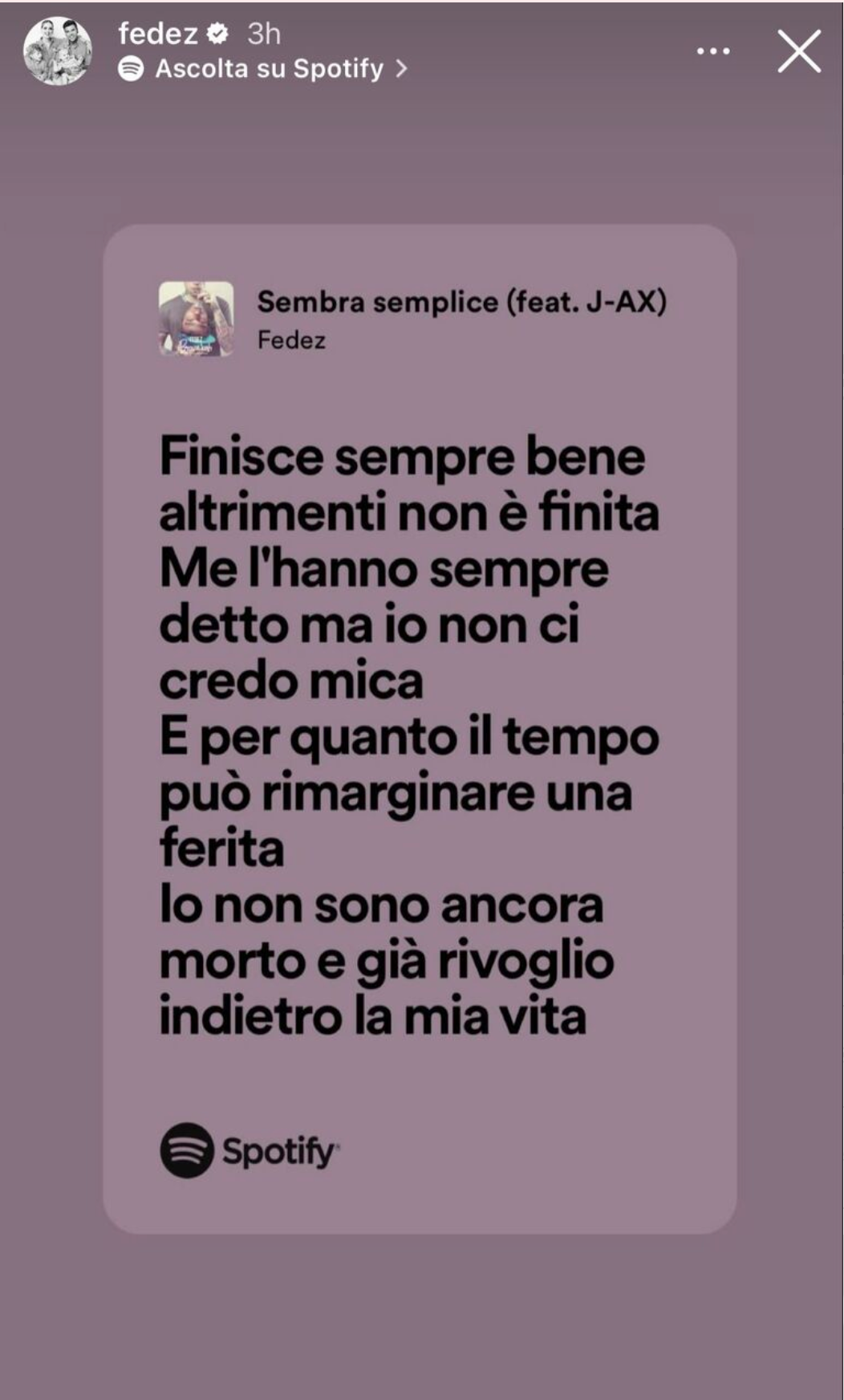Questo non è il primo caso in cui Fedez usa i social per esprimere sentimenti profondi, spesso lasciando che sia la musica a parlare per lui. La story recente non fa eccezione, e i fan interpretano la condivisione della canzone come un segno di non definitiva resa, una porta ancora aperta verso la moglie Chiara.