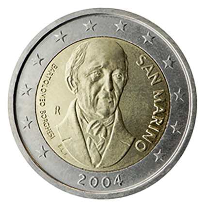 Infine, nella lista delle monete da 2 euro più apprezzate c'è quella di San Marino, un piccolo Stato indipendente situato in Italia, coniata nel 2004. In totale sono stati prodotti 110.000 esemplari in omaggio a Bartolomeo Borghesi. Al centro è stato inciso il busto del numismatico ed epigrafista italiano, circondato dal suo nome. Questa moneta ha un valore compreso tra 200 e 300 euro.