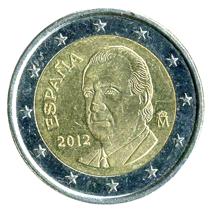 Questa moneta commemorativa spagnola è stata emessa nel 2012, in occasione del decimo anniversario dell'euro. È stato emesso in 8 milioni di copie, ma da 70.000 a 100.000 unità presentano un errore nella dimensione delle stelle che appaiono sul bordo. Sono leggermente più grandi del normale. Questa anomalia, difficile da identificare, aumenta il valore della moneta.