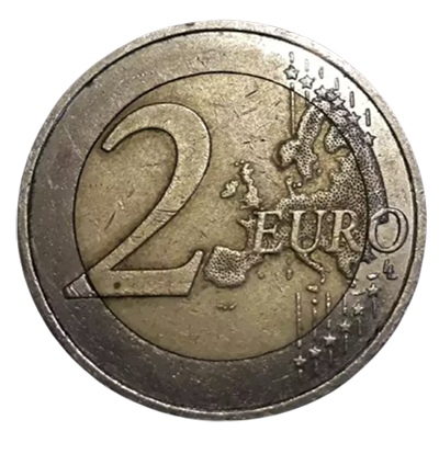 2 euro emessa dalla Grecia nel 2002. Questa moneta presenta una particolare rappresentazione di una scena della mitologia greca: il rapimento di Europa da parte di Zeus trasformato in toro. L'errore in questione riguarda una piccola 'S' che si trova nella parte inferiore della moneta, che indica che la moneta è stata effettivamente coniata in Finlandia per la Grecia. Poiché questa variante non era prevista per la produzione di massa, è diventata piuttosto rara e ricercata dai collezionisti. In condizioni ottimali, questa moneta può raggiungere prezzi significativamente superiori al suo valore nominale.